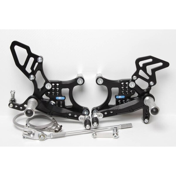 Set is in 9 standen instelbaar in hevels KOGELLAGERS 22mm,uitvoering waterbestendige afdichtingen * verstelbare hevels - volgens de laarzen maat * hard zwart anodiseren - garandeert een maximale stevigheid en lange levensduur * ergonomische vorm * rijk aan taakverlichting * rem schakel set is verkrijgbaar voor zowel, standaard en omgekeerd schakelen. U kunt omgekeerd schakelen door de verschuiving van gezamenlijke (tussenstuk) van de schakelschijf as van 180° * incl. stalen gevlochten remslang