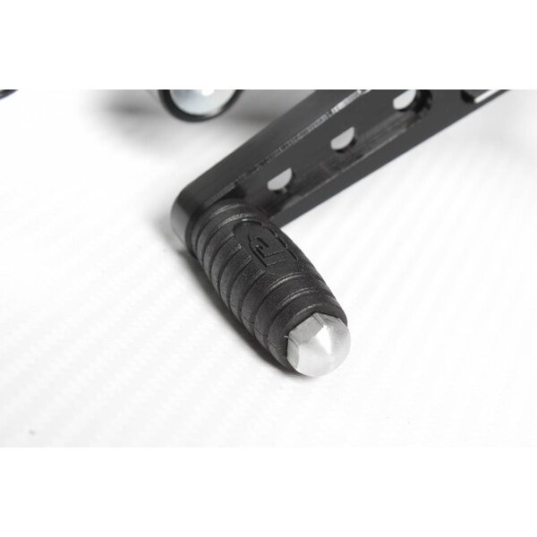 https://youtu.be/9eqya9IlgToVolledig verstelbare rem Schakel set met omgekeerd schakelen* 9 standen * opvouwbare voorste peg * aluminium aloy 7075 T6 * in hevels KOGELLAGERS 22mm,uitvoering waterbestendige afdichtingen * verstelbare hevels - volgens de laarzen maat * hard zwart anodiseren - garandeert een maximale stevigheid en lange levensduur * ergonomische vorm * rijk aan taakverlichting